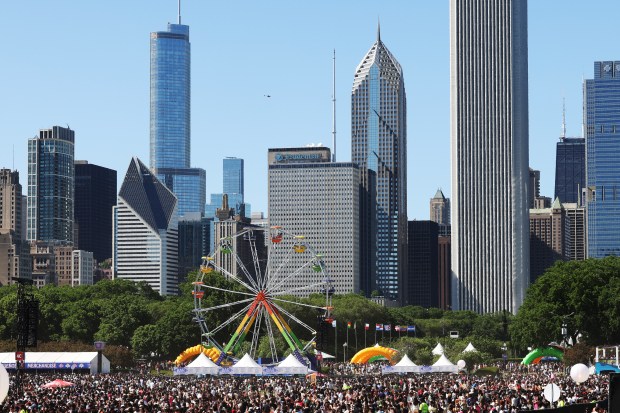 Festival goers attend the Sueños Festival at Grant Park on May 26, 2024. (Eileen T. Meslar/Chicago Tribune)People dance during the Sueños Festival at Grant Park on May 26, 2024. (Eileen T. Meslar/Chicago Tribune)