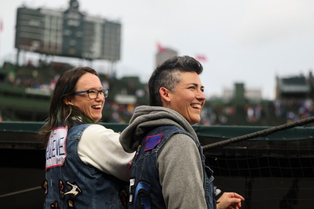 Chicago Red Stars midfielder Julia Bianchi poses for a selfie with fans after the Chicago Red Stars hosted Bay FC for a game at Wrigley Field on June 8, 2024. (Eileen T. Meslar/Chicago Tribune)Chicago Red Stars goalkeeper Alyssa Naeher (1) tries to stop Bay FC’s Racheal Kundananji during their game at Wrigley Field on June 8, 2024. (Eileen T. Meslar/Chicago Tribune)Cheryl and Clair Rollman-Tinajero sport vests with soccer patches as they watch the Chicago Red Stars warm up before their game against Bay FC at Wrigley Field on June 8, 2024. (Eileen T. Meslar/Chicago Tribune)